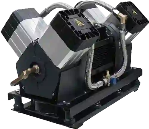 Особенности: высокотехнологичная конструкция, минимальные обратные токи сжатого воздуха, равномерный нагрев и низкая рабочая температура. Высокоэффективное охлаждение и система прямого всаса. Уровень шума ниже 80 дБА. Поршневая группа с использованием политетрафторэтилена увеличивает ресурс до 4000 м/ч.